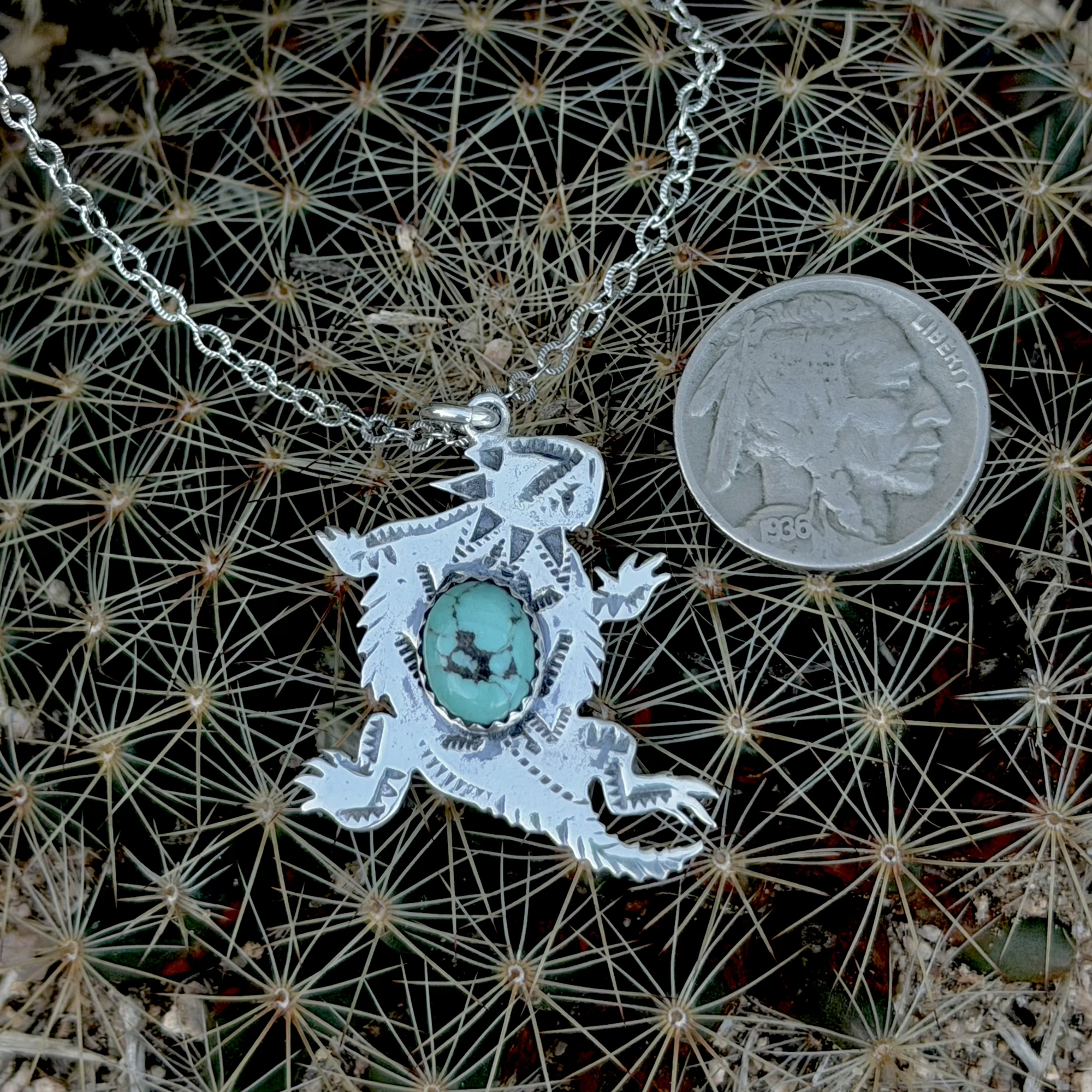 Measuring approximately 1.25 inches in height and 1 inch in length, the Horned Toad Pendant is perfectly sized to make a statement while remaining comfortable for everyday wear.